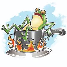 Like the frog that is happy to be put into a water-filled pot and is having a leisurely swim, so doesn’t notice the gradual rise of water temperature until it’s too late – he’s been cooked!